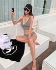 宋智雅同款单身即地狱性感泳衣比基尼千鸟格