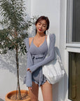 Ruffled 2 - piece sun protection shirt + one - piece swimsuit