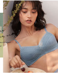 Small Hollow Out Details add Richness to the Bra, lending it a Mature yet Sensuous Look. The Comfortable Wire-Free Thin Cotton Cups provide ample support, enhancing and gathering the bust for a fuller appearance. Suitable for both small and large busts, it offers an effortless fit and control.