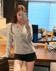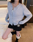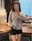 Custom Star-Shaped Rhinestone Button Knit Cardigan