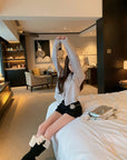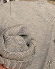 Made from a delicate and soft blend of merino wool, this cardigan feels gentle against the skin. The star-shaped rhinestone buttons are exquisitely crafted, adding a subtle sparkle. Even when worn underneath a coat, the buttons peek out just enough to catch the eye without overpowering the outfit. The light heather gray color is versatile and pairs well with any look.