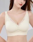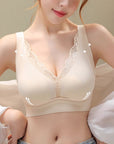 Designed for fuller busts, this bra provides firm support and prevents sagging while enhancing the shape. The dual-layer lift in the cups offers a strong push-up effect, while the semi-fixed latex jelly padding ensures comfort and stability. The U-shaped back prevents slipping straps and reduces shoulder pressure, while the widened side panels effectively smooth and gather side breast tissue for a flattering silhouette.