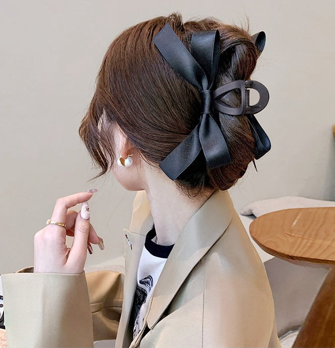 Elegant Matte Hepburn-Style Bow Shark Clip
