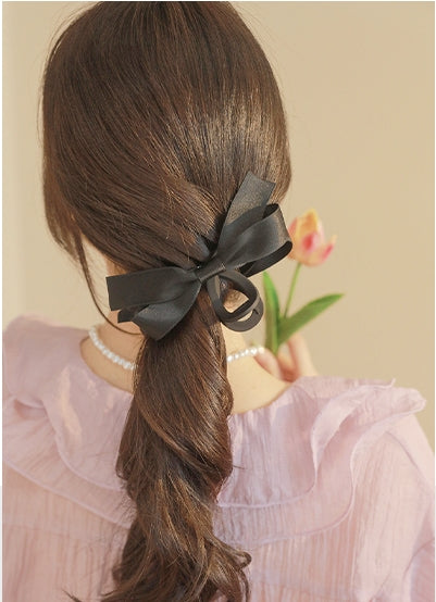 Thick satin bow with a lustrous finish paired with a matte shark clip for a sophisticated look. It works beautifully as a daily accessory or to complement formal attire, with a reinforced design that ensures a secure hold no matter how active you are.