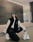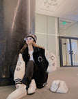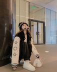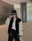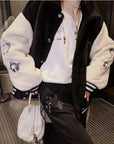 Kroheart Embroidered Print Faux Fur Thickened Baseball Jacket