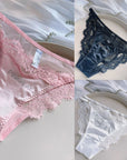Low-Rise Rhinestone Lace Panties (3-Pack: Pink, Black, White)