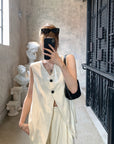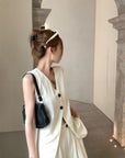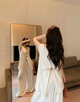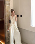 The deep V-neckline accentuates the neck, and the back features a split knot for added layering detail.