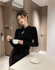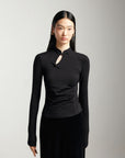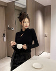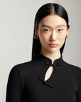 New Chinese Style Slim Fit Knit Top with Small Mandarin Collar