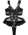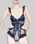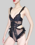Indulge in our Sensual Lace Satin Bodysuit, where delicate lace meets smooth satin for a luxurious feel against your skin. With a waist hollow-out design to accentuate your curves, deep V-neckline, and open back, it's perfect for showcasing your figure. The sheer lace fabric adds allure, while concealed buttons and breathable cotton in the crotch ensure comfort all day long.