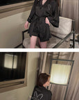 1: Shorts set: Robe + top + eye mask + silk storage bag + shorts (choose NO.1) 2: Pantsuit: Robe + top + eye mask + silk storage bag + pants (choose NO.2) M: Suitable for Weight: 45-55kg L: Suitable for Weight: 55-65kg