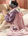 Upgraded Coral Velvet Daisy Long and Thick Bathrobe