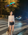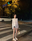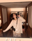 Free size:衣长75,胸围112,肩宽51,袖长58,可穿到130斤