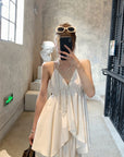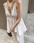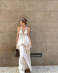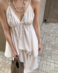 白茶温柔缎面深V吊带