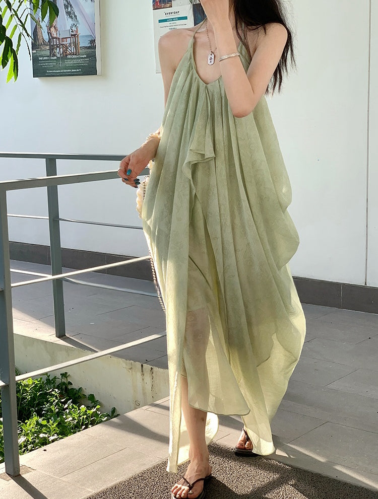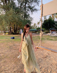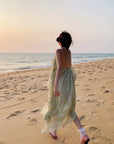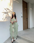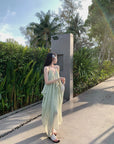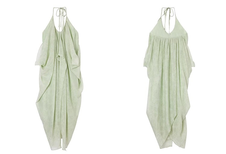 This cocoon-shaped dress effortlessly blends Nordic simplicity with French elegance. Its flowing maxi hem is perfect for capturing attention in photos, exuding a relaxed and refreshing charm. Made from premium Tencel with delicate jacquard floral patterns, the fabric offers unforgettable softness with a structured yet gentle drape. High-density weaving ensures durability, while the post-treatment process enhances moisture absorption and comfort.