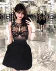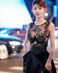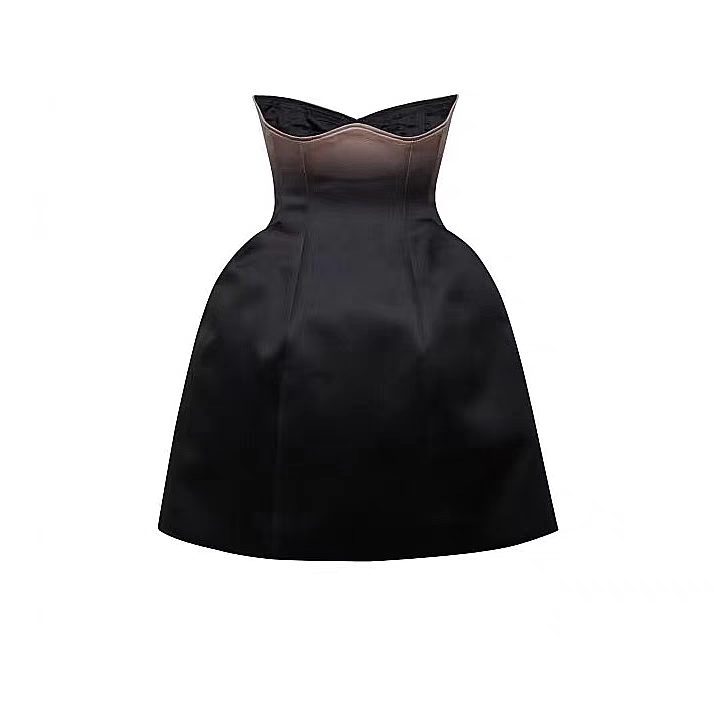 The three-dimensional lace design exudes elegance. The semi-transparent top adds a touch of sensuality, and the built-in cup padding eliminates the need for additional undergarments. With its thickness, even smaller bust sizes fit well without gaps. The gradient-colored Hepburn-style skirt beautifully accentuates the waistline.