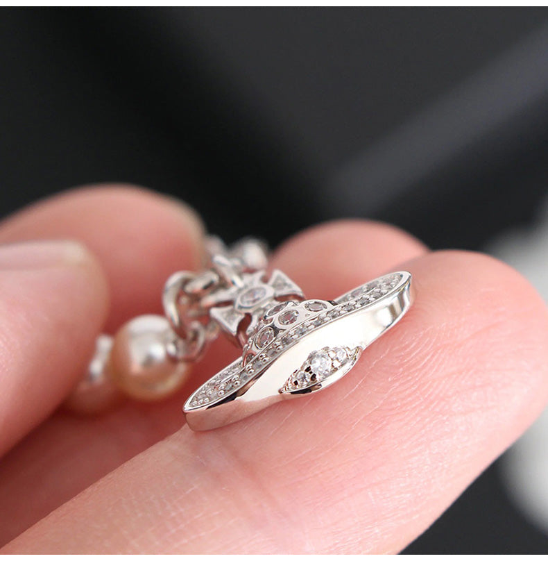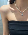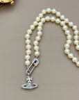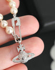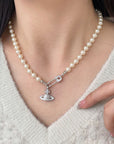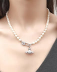 Vivienne Westwood-Inspired Saturn Brooch Rhinestone Necklace