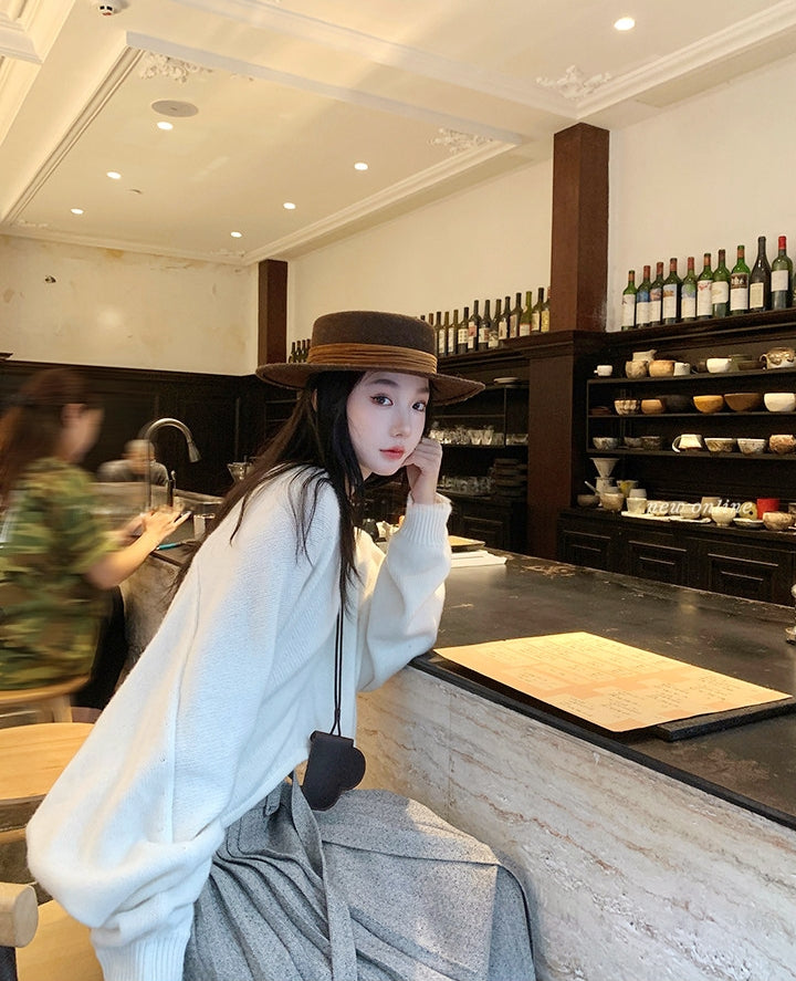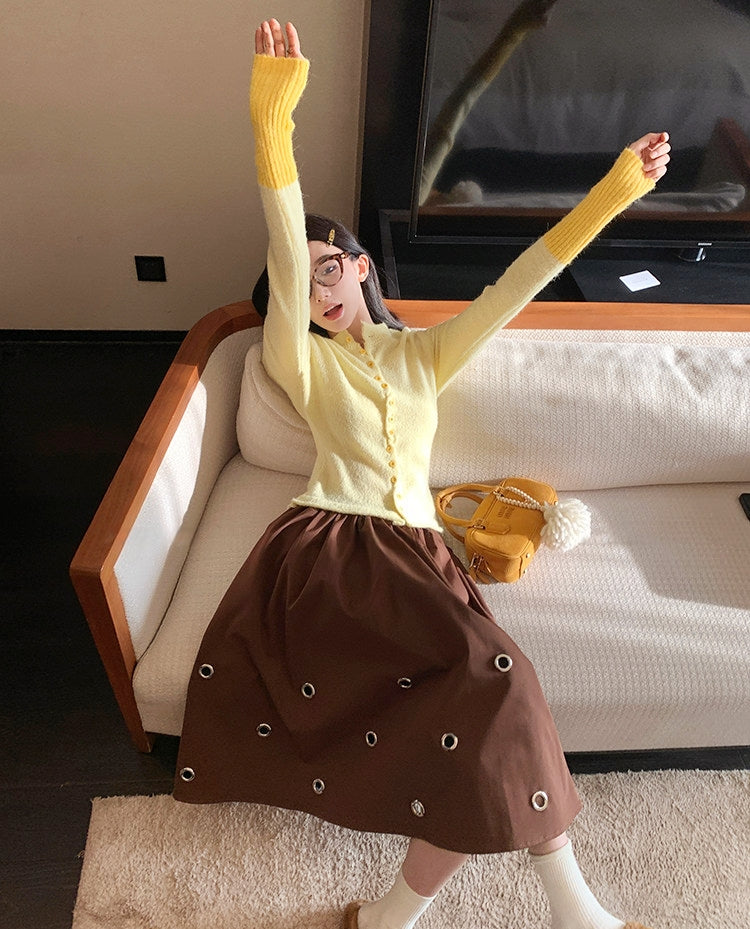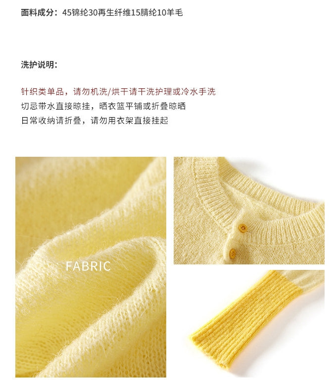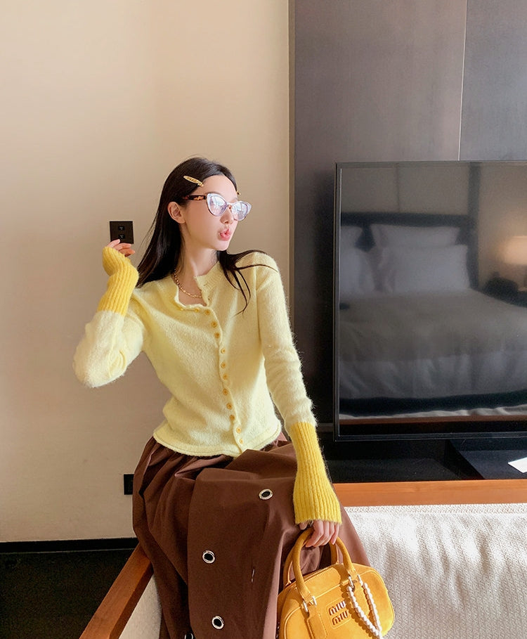 Rabbit Hair Blend Knit Set with Layered V-Neck Cardigan