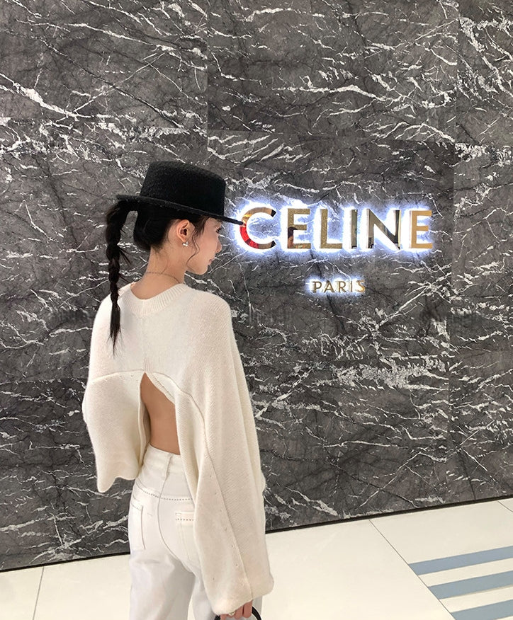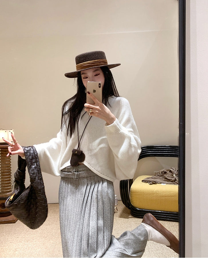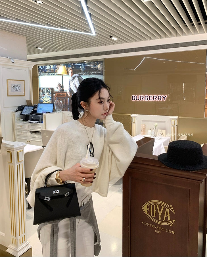 Back-Slit Relaxed Patchwork Batwing Sleeve Knit Top