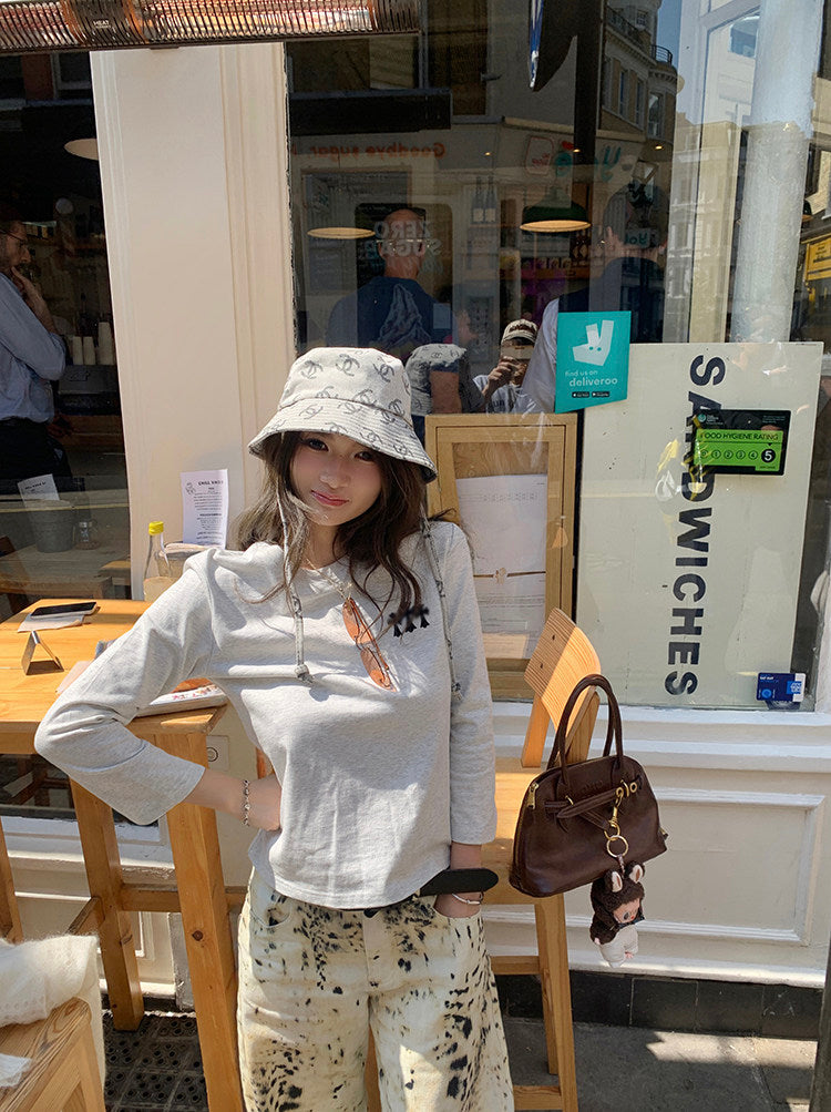 American-style color-block letter embroidered cotton tee