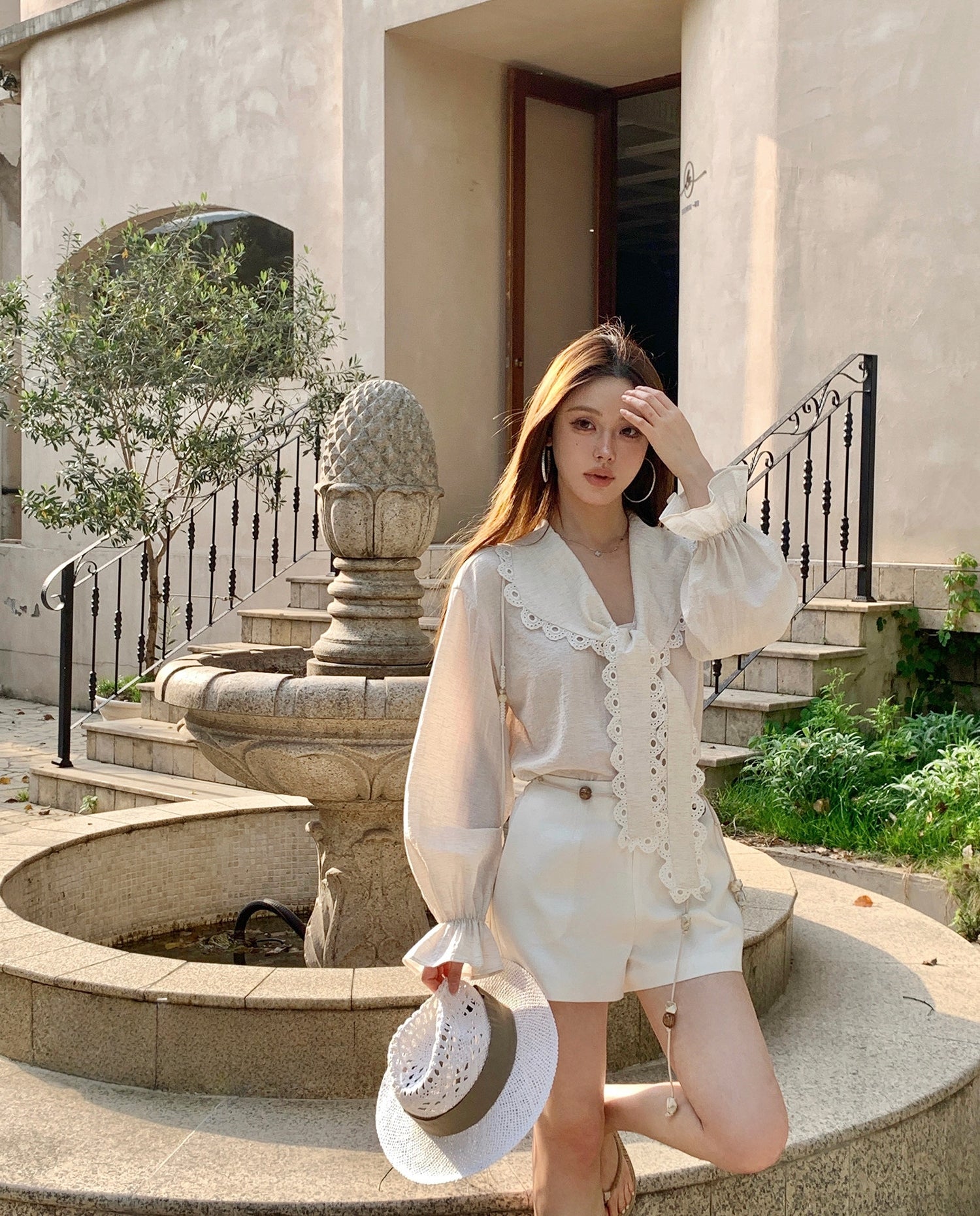 Vintage-style lace jacquard top