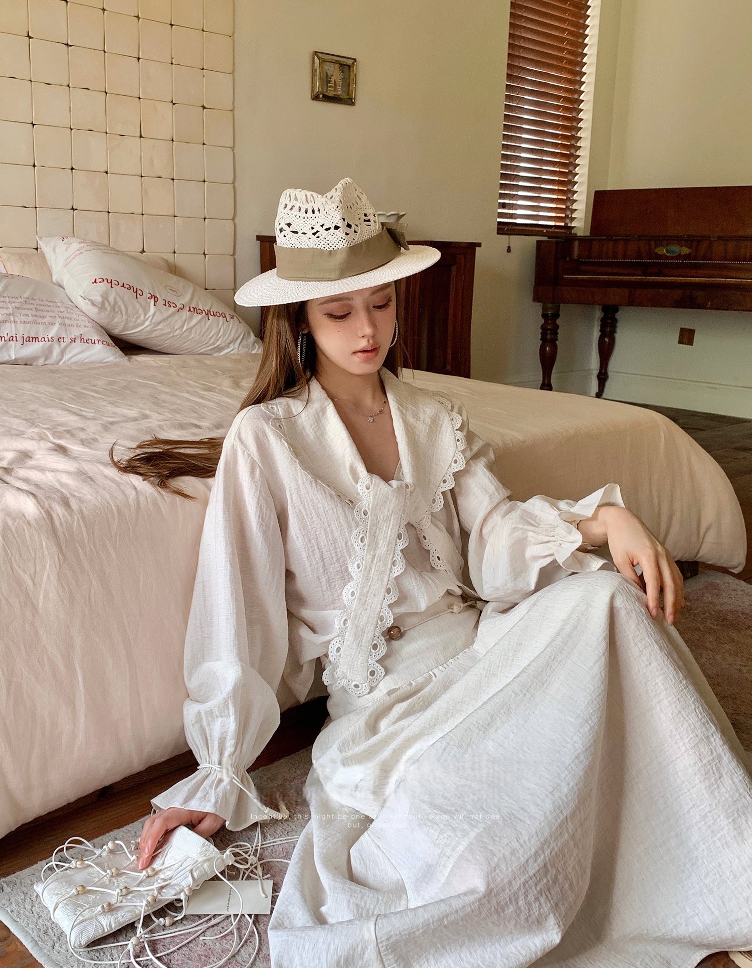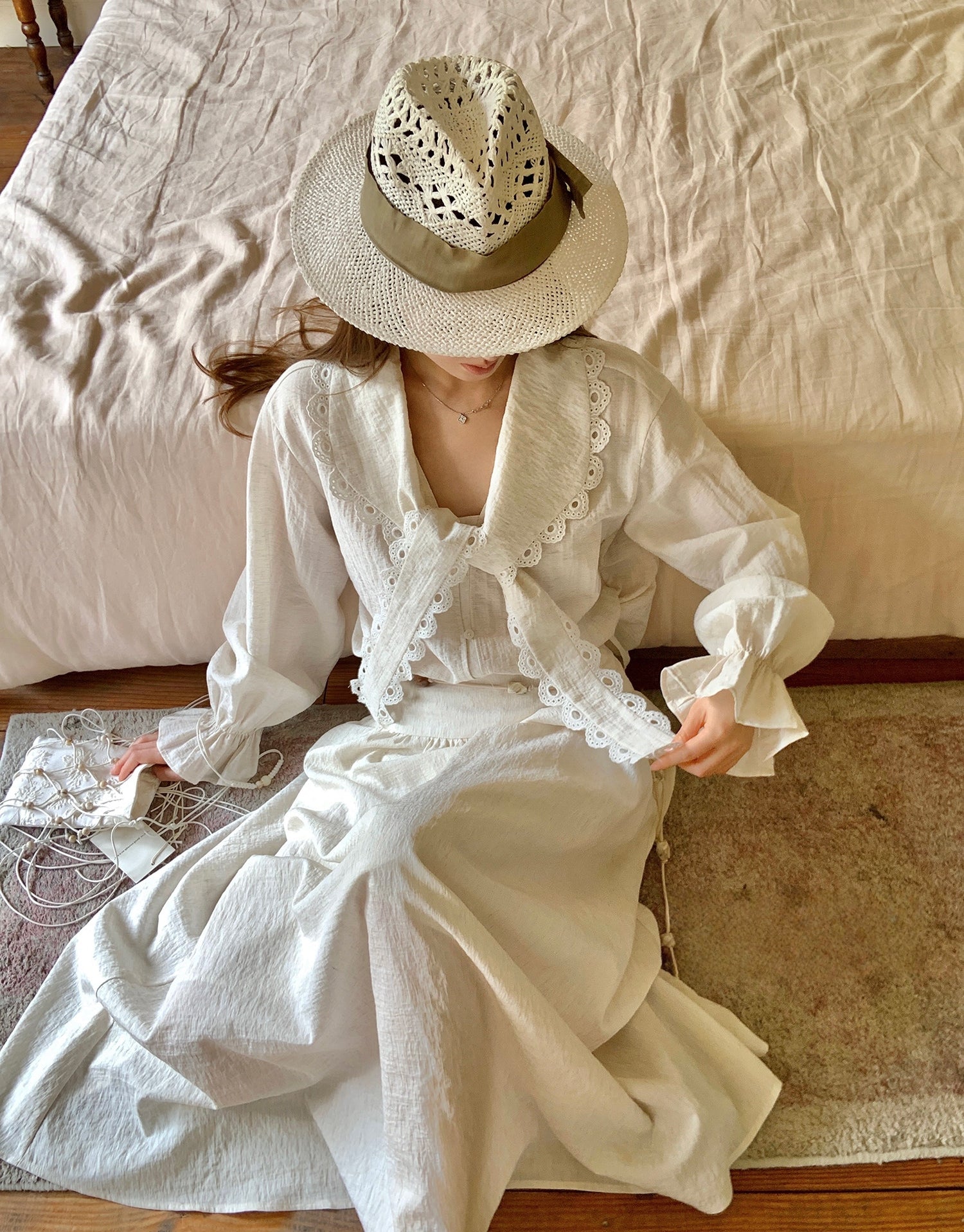 Loose Ruffled Flare-Sleeve Cotton Linen Shirt